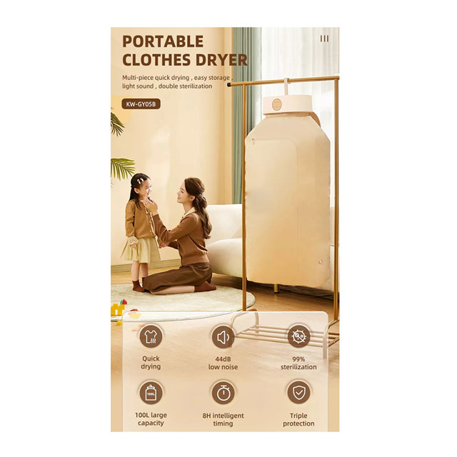 بر خلاف ظاهر جمعوجور آن، Smart Frog مدل KW-GY05B ظرفیت قابل توجهی دارد و میتواند تا ۱۰ کیلوگرم لباس را بهصورت همزمان خشک کند. این ویژگی، آن را به گزینهای عالی برای خانوادهها، دانشجویان، یا افرادی با زندگی پرمشغله تبدیل کرده است.