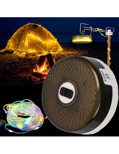این چراغ آویز به صورت ریسهای به طول ۱۲ متر طراحی شده است که نور زرد ملایم و چشمنوازی را تولید میکند. طول ریسه کافی است تا بتوانید فضای داخلی چادر، میز کمپینگ یا محیط جشن را به طور کامل روشن کنید. نور و روشنایی