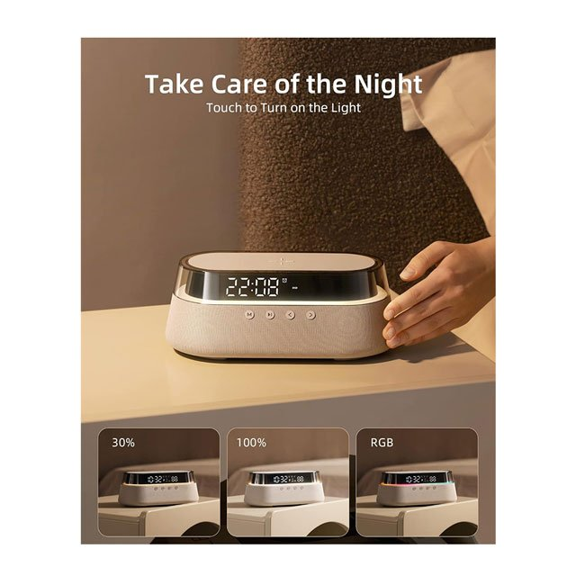 در ساختار این ساعت زنگدار، یک قابلیت نور شب (چراغ خواب) تعبیه شده است. این نور ملایم و آرامبخش، محیطی مناسب برای خواب یا بیداری در شب ایجاد میکند و بدون ایجاد اختلال در چرخه خواب، امکان دیدن محیط اطراف را فراهم میسازد. شدت و رنگ این نور اغلب قابل تنظیم است.