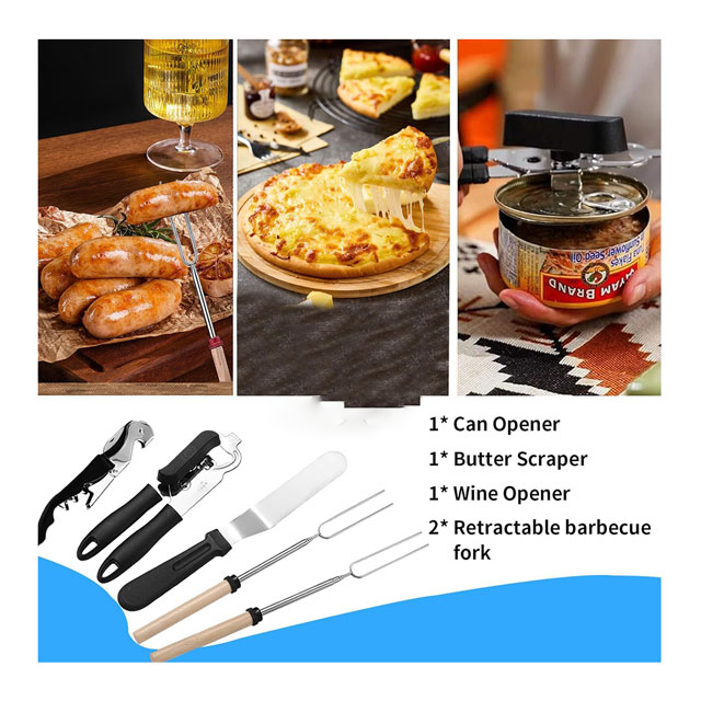 همچنین وجود چنگالهای تلسکوپی باربیکیو، تجربه پخت کباب و غذاهای آتشپز را ایمنتر و راحتتر میکند.