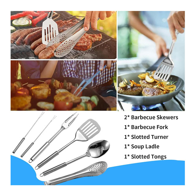 - انبر شیاردار، چنگال باربیکیو و سیخهای مخصوص برای کباب کردن