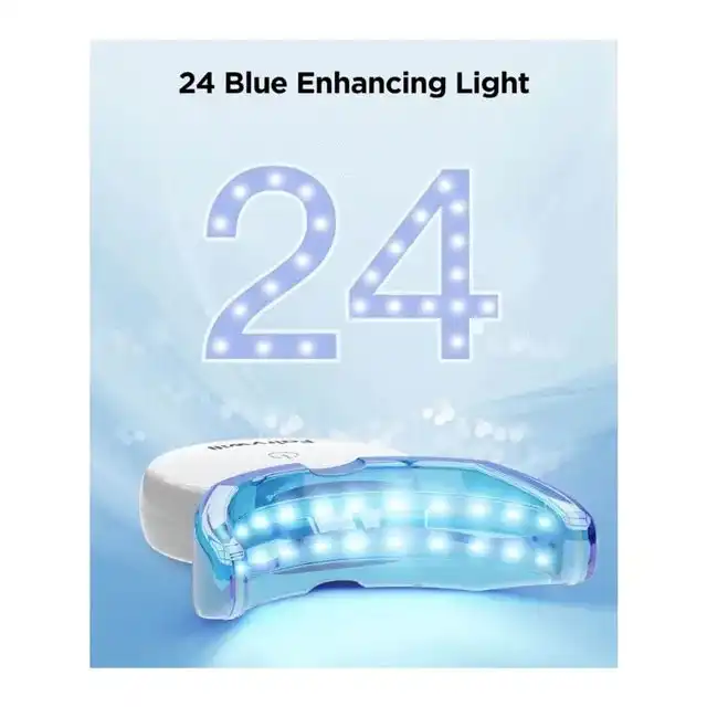 این دستگاه از یک چراغ سفیدکننده حرفهای پزشکی با ۲۴ LED استفاده میکند که نور آبی را بهطور یکسان به تمام نواحی دندان میتاباند. این نور آبی به شما کمک میکند تا لکههای سطحی و حتی لکههای تعبیه شده در اعماق مینای دندان را به طور کامل از بین ببرید.